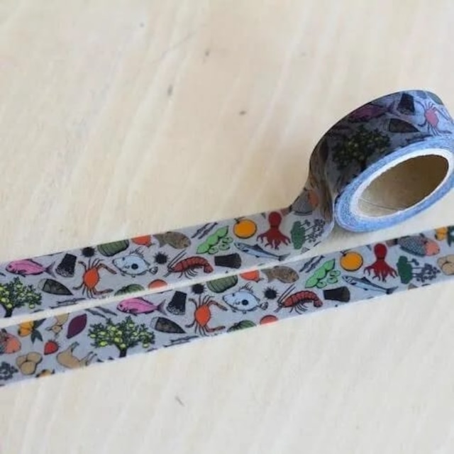 【たてマス 海底旅行】 ◎夢の海底ツアー! 空→海面(釣船)→海底へとストーリーが広がっています。 ◎マスキングテープをのばしていくと、まるで海底を旅行している気分が楽しめます。 縦長に柄が配置できるため、海の中のストーリーを描くことが実現しました。 最後まで伸ばすと、ラッキーなあなたは海底にいる深海魚にあえるかも・・・!? --------------------------------------------------------------------------------------- 〇 ● 〇 ● 〇 たてマス 〇 ● 〇 ● 〇 縦柄だから出来る、なが〜いモチーフや縦にデコレーション出来ることで 意味を持つ、"新しいタイプ" のマスキングテープ。 タテなことに意味がある柄を集めました。 <12柄展開> 縦長モチーフだから、従来のマスキングテープよりも たくさんの絵柄が中に入っています。 原材料・素材 和紙 寸法(長さx幅x高さ)・重量 パッケージ:W43×H43×D15mm / 10g その他の項目・備考 幅15mm × 長さ7M