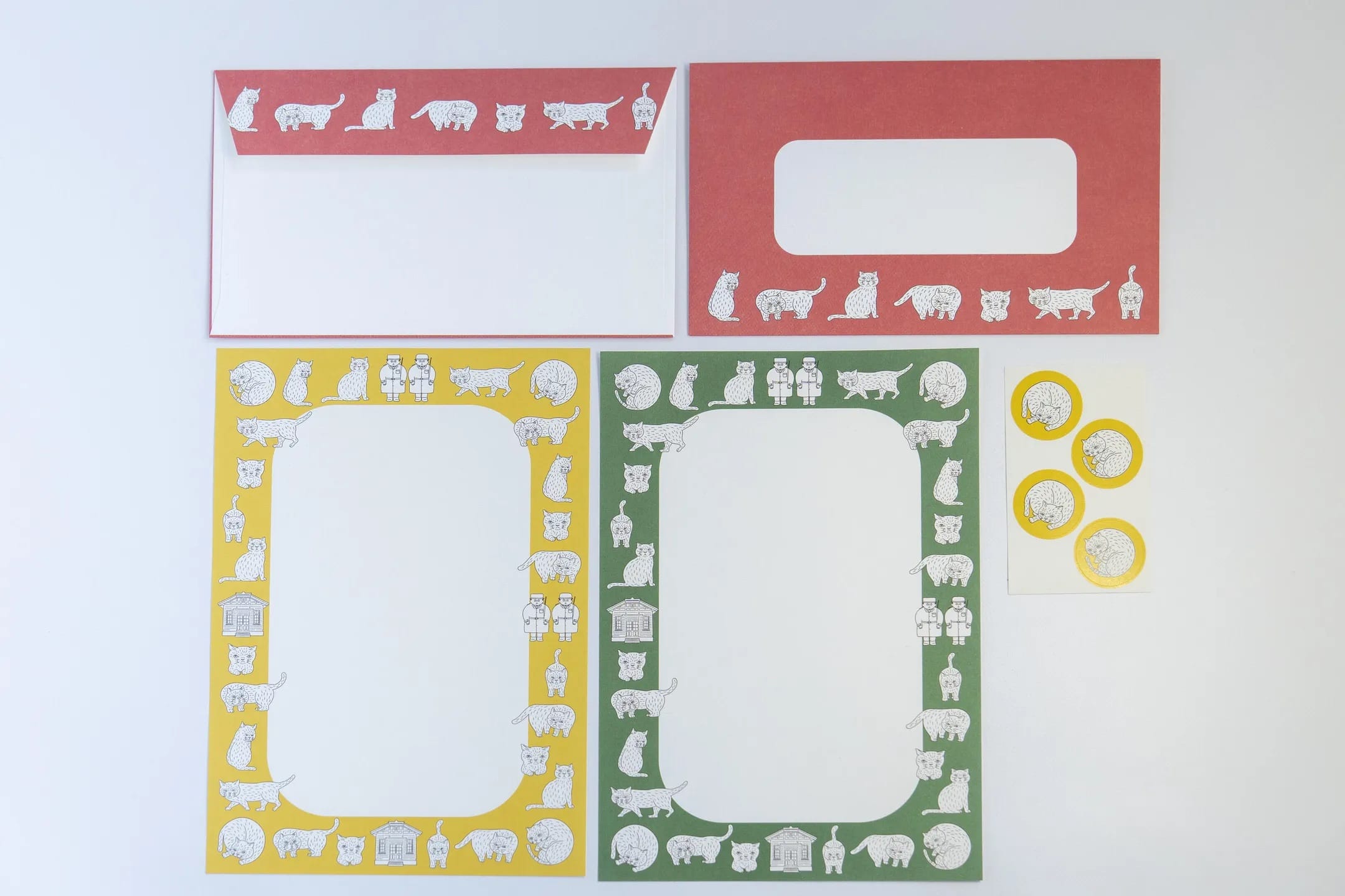 山猫瓶詰研究所をぎゅっと詰め込んだレターセット。便箋は中央が白色の無地になっています。太めの縁の目を引くポップな色味が心躍ります。「最近どう?」から始まる何気ないお手紙を書くそんな日を作ってみては?