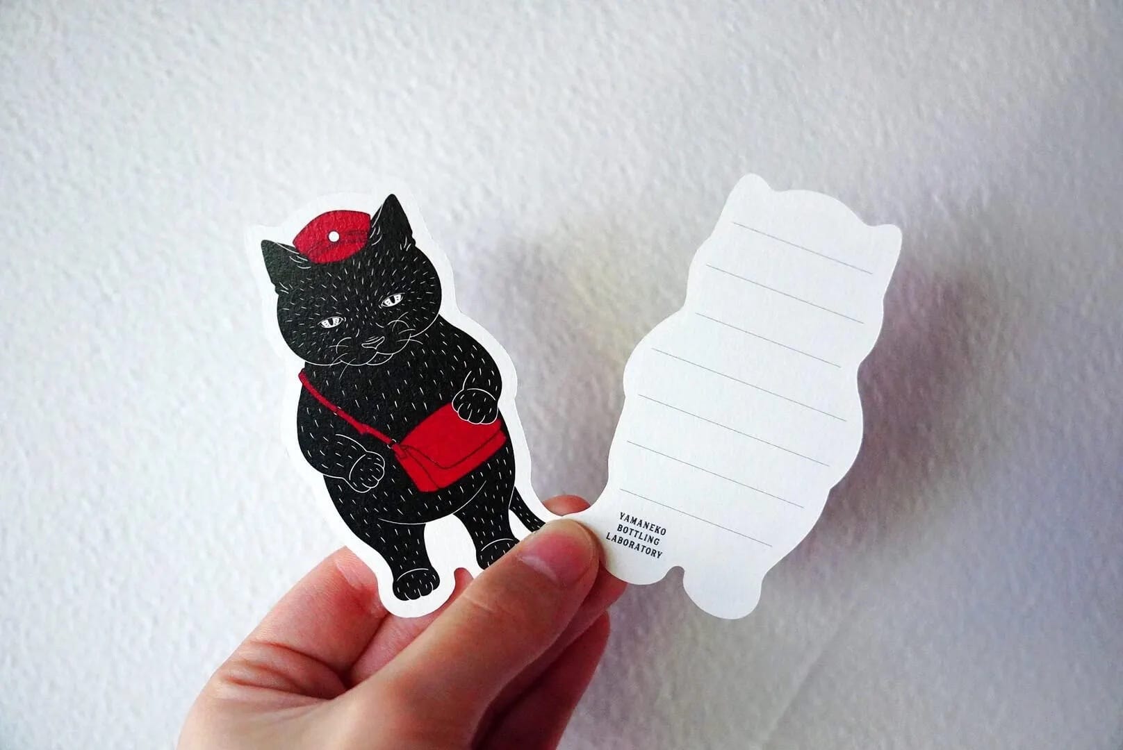 郵便猫のイラストの裏は7行の横罫線と英字ロゴのシンプルなデザインです。