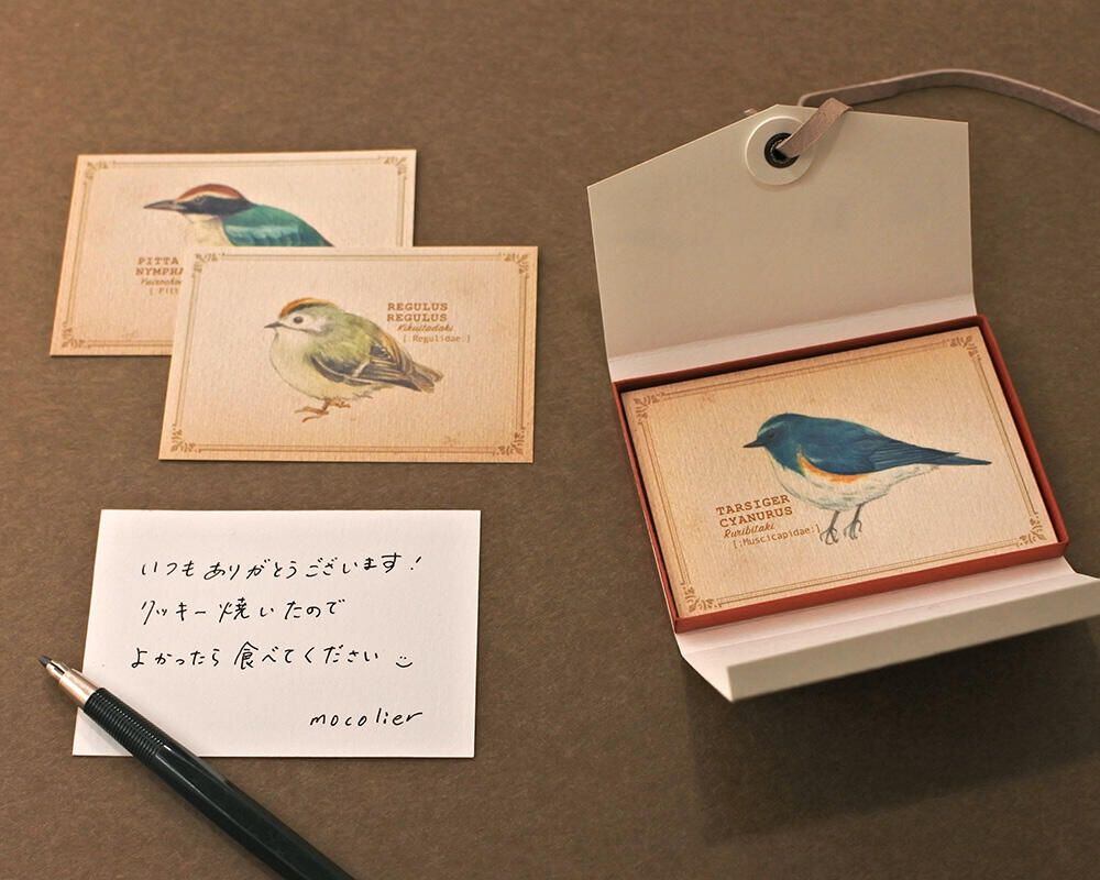 ひとつひとつ柄が違うカードが紙製の専用ケースに入っています。それぞれの学名、科目、和名がローマ字で添えられているので、図鑑のような雰囲気を楽しめます。
